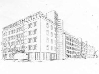 Die Sichtbarmachung dieses urbanen Wechsels ist ebenfalls ein zentrale Entwurfsgedanke. Als absolut letzter Ausläufer der dicht bebauten Stadt, des inneren Ringes der Bezirke bzw. ehemaligen Vorstädte um die City, soll das Gebäude nochmals - nicht zuletzt in Anbetracht seiner überörtlich wichtigen Funktion - ein deutliches Zeichen eben jener urbanen Struktur darstellen.