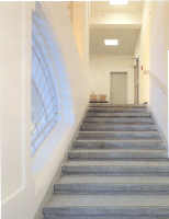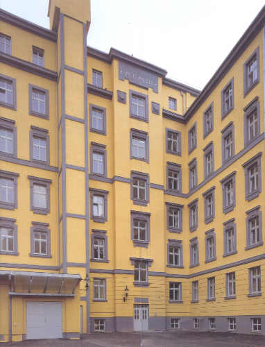 Aufbauend auf dem brauchbaren Zustand der Gebäudesubstanz erschien die Neuadaptierung und Generalsanierung auch aus diesem Blickwinkel ökonomisch richtig und sinnvoll. Durch ein neu errichtetes Stiegenhaus samt Personen- und Lastenaufzug, das durch eine verglaste Brücke zum Gebäude Berggasse / Rossauer Lände ergänzt wird, wurde eine Kommunikationsverbindung und zeitgemäße Erschließung des heutigen Multifunktions-Bürohauses erreicht. Völlig neu ist die Raumaufteilung und die moderne Infrastruktur, die von aufwändigen Installationen für die intensive EDV-Nutzung über zeitgemäße Haustechnikeinrichtungen bis zum Zutrittskontrollsystem und der unterbrechungsfreien Stromversorgung ganz auf die heutige Verwendung zugeschnitten ist. Seinen historischen Charakter hat das Haus aus dem Jahr 1903 dennoch weder innen noch außen verloren. Während im Inneren die tragende Struktur unverändert blieb, konnte außen die typische Fassadengliederung der Jahrhundertwende durch eine innen verlegte Zusatzwärmedämmung nicht nur erhalten, sondern ihre Wirkung durch Farbakzente noch gesteigert werden.
